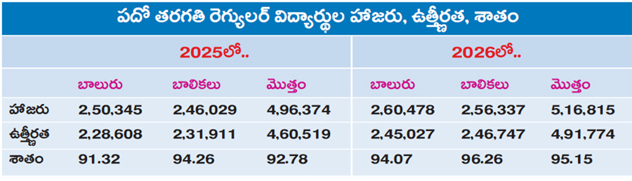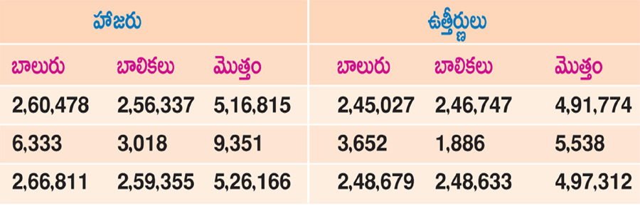 పరీక్షలు రాసిన మొత్తం విద్యార్థులు 5.26 లక్షలు