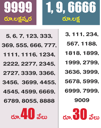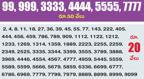 పైన పేర్కొన్న ఫ్యాన్సీ నెంబర్లు కాకుండా ఆరోజు విడుదల చేసిన మిగతా నెంబర్ల నుంచి ఛాయిస్ నంబర్ ఎంచుకునేందుకు ఆరువేలు, ద్విచక్ర వాహనాలకైతే మూడు వేలుగా ధర నిర్ణయించారు.