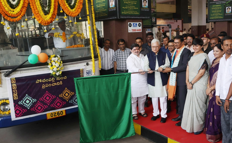 - జీఐ హస్తకళలతో అలంకరించిన ప్రత్యేక బస్సులను జెండా ఊపి ప్రారంభించిన రాష్ట్ర గవర్నర్ జిష్ణు దేవ్ వర్మ, మంత్రి పొన్నం ప్రభాకర్